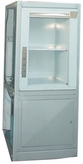 Този тип асансьор е предназначен за пренасяне на малки товари 50 - 200 кг на височина до 35 м - 8 спирки. Безшумен при работа и с възможност за съчетаване по размери и цветове със сградата. Всички части на кабината и вратите са изработени от неръждаема стомана.